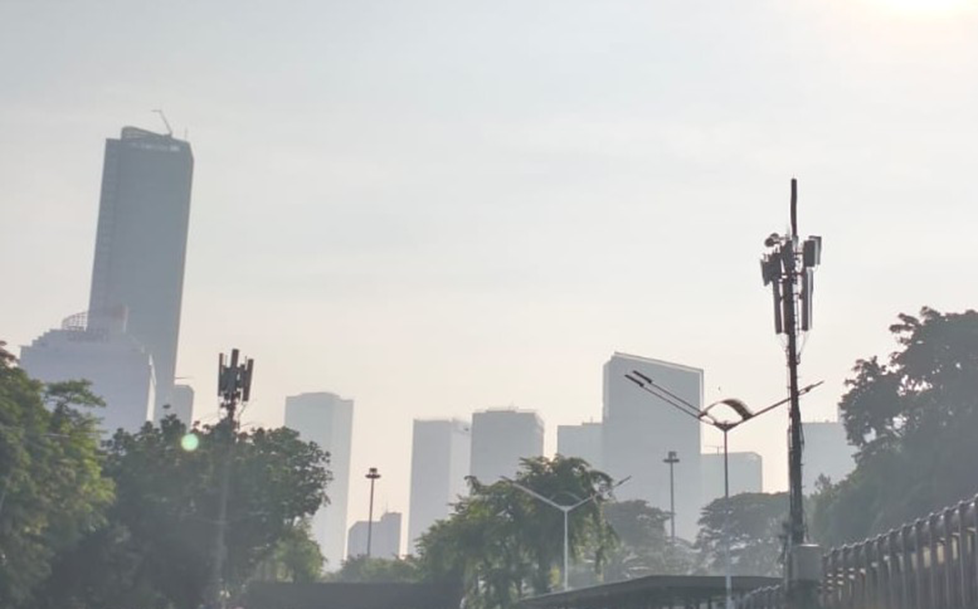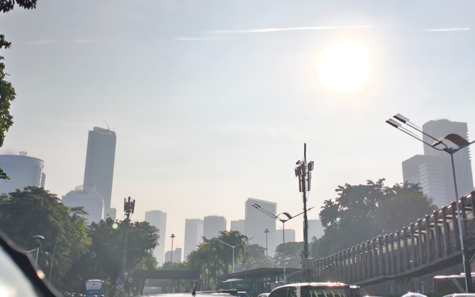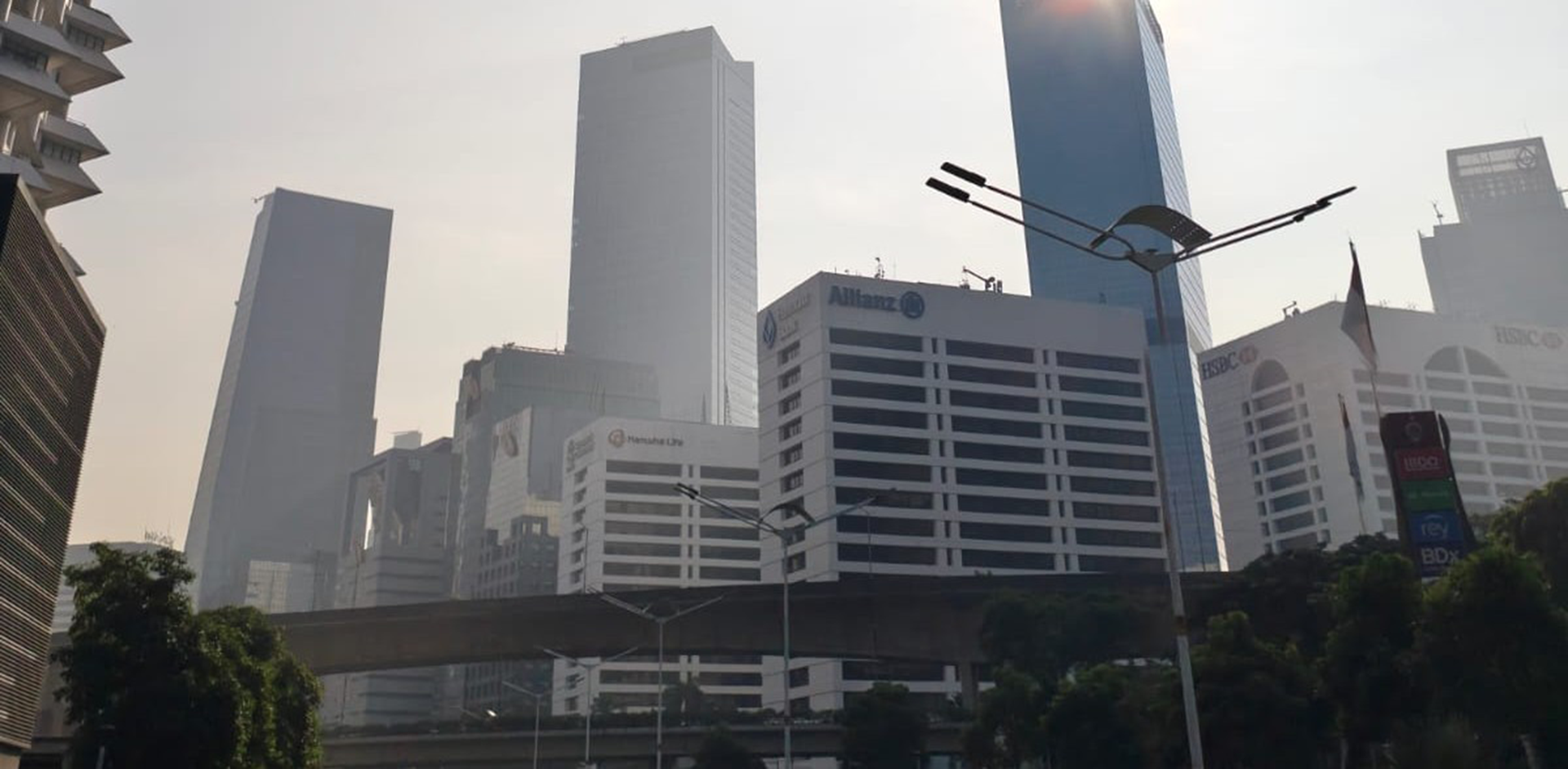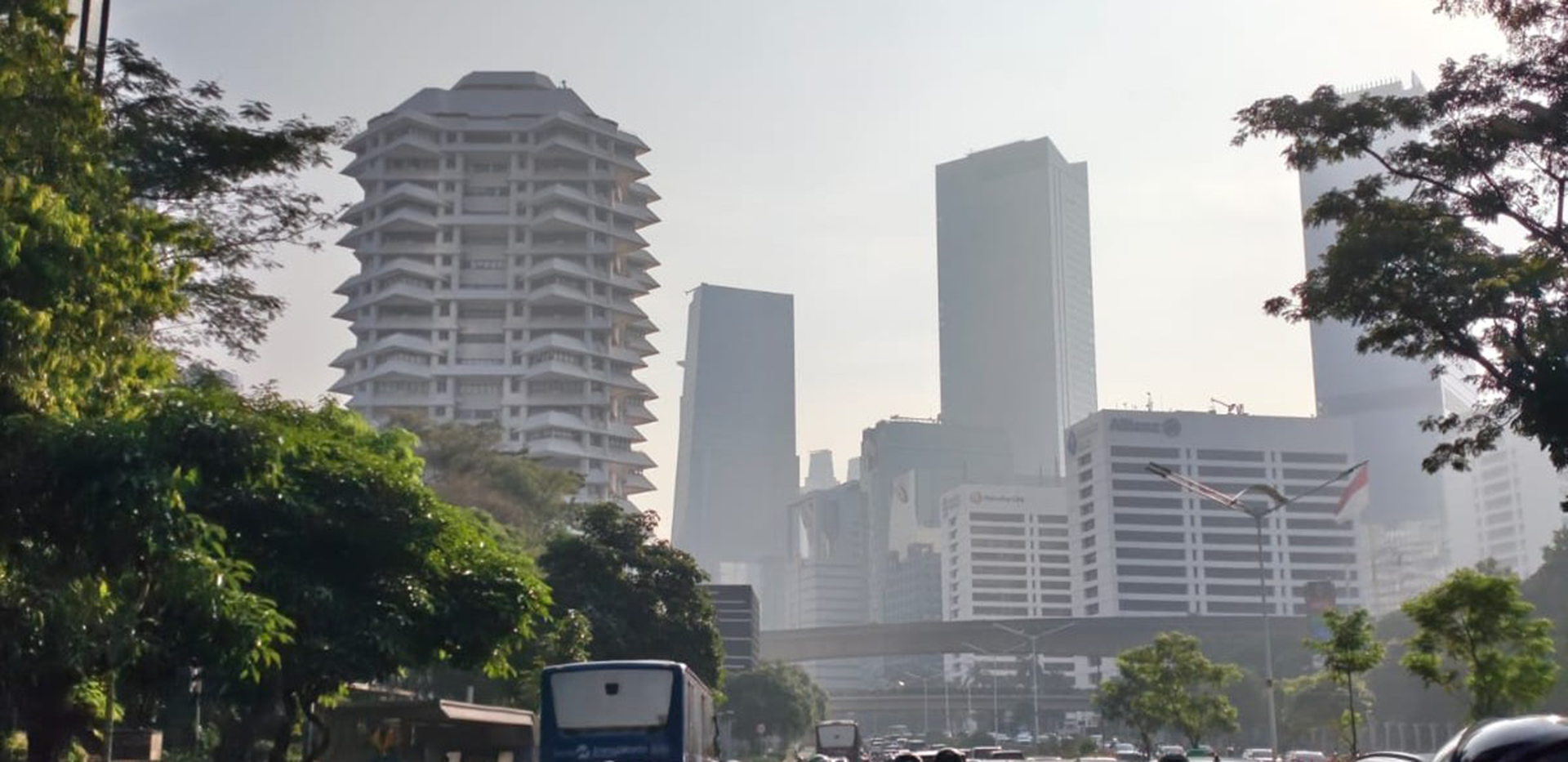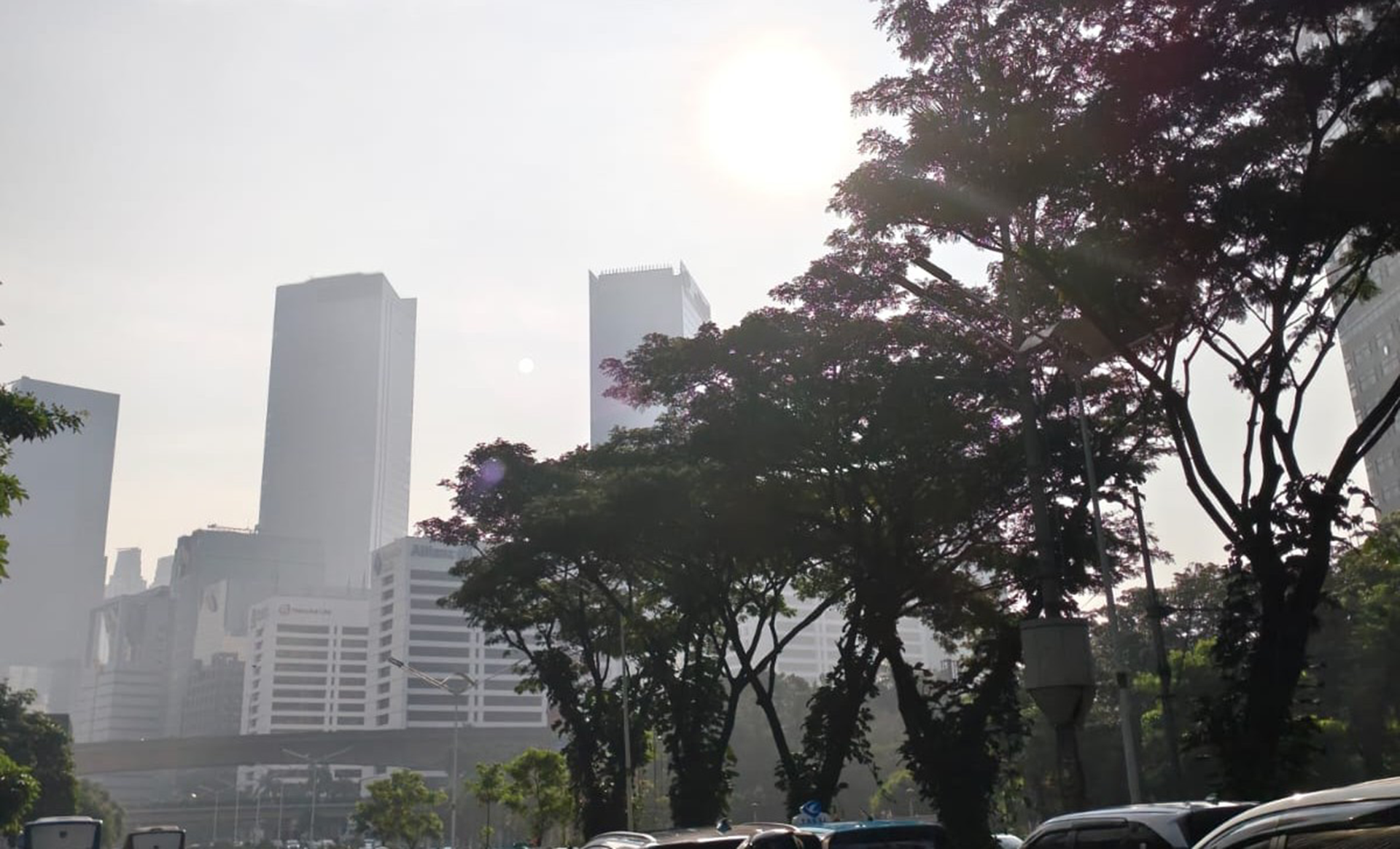 Kualitas Udara di Jakarta, Sudirman langit terllihat seperti kabut putih.