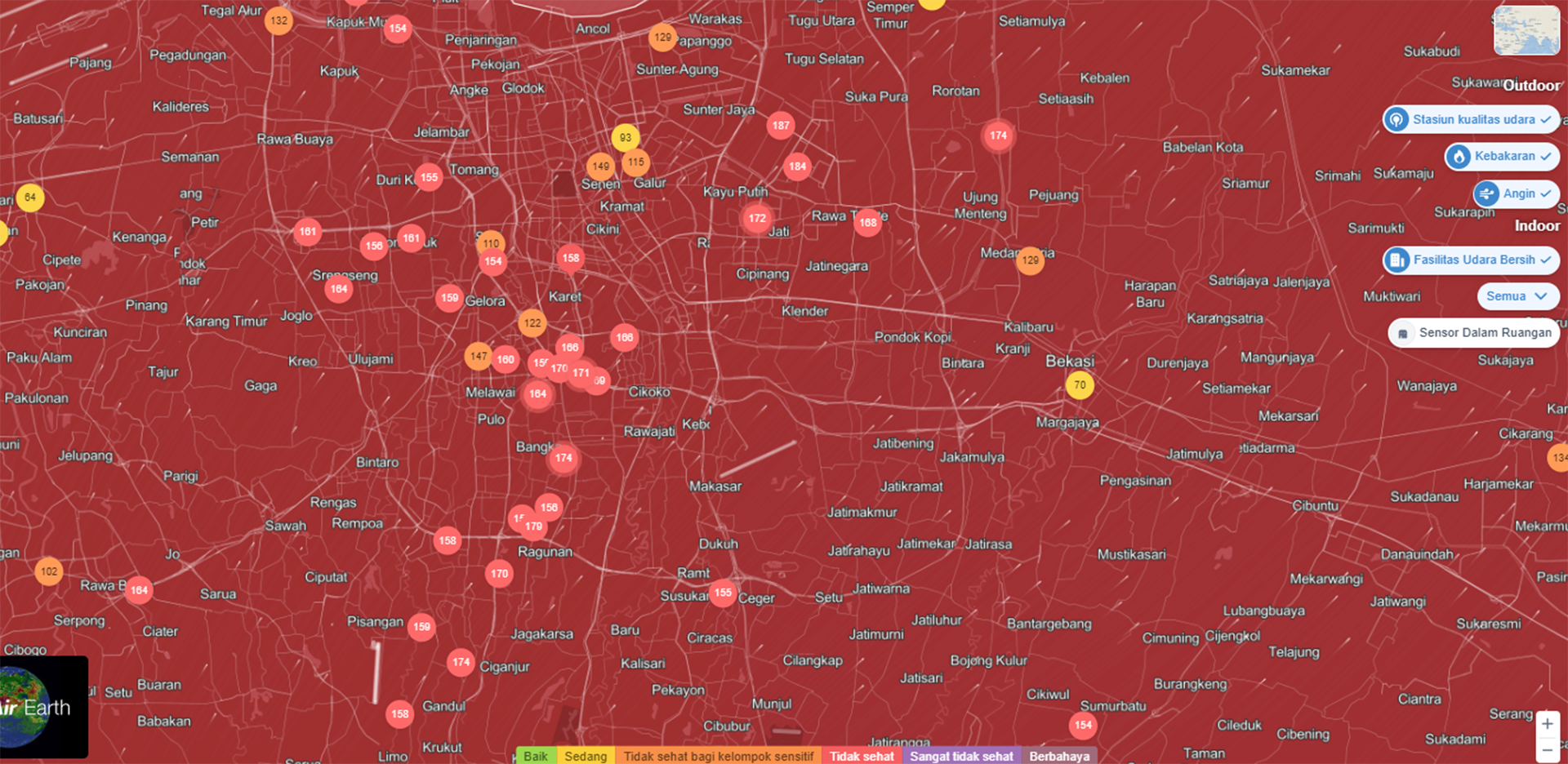 Indonesia menggunakan Indeks Standar Pencemaran Udara (ISPU) yang dikategorikan menjadi: